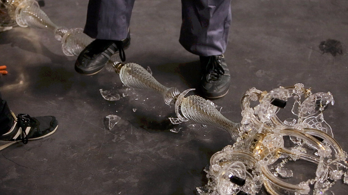»I used chandeliers as the raw material for my work. Just as a traditional sculptor works with a block of stone, marble or wood, I worked with these objects. Chandeliers aren’t merely ordinary lights – they’re also symbols of wealth and power. They have a specific function. They represent a class in our society which has lulled itself into a sense of security and strength. I wanted to deform these symbols, to destroy them, to turn them into something else. I damaged them, broke them, smashed them until I felt the sculptures were finished. As a metaphor, the sculptures are like injured animals: unpredictable, dangerous, ready to defend themselves till the end. Although they are still lights lighting up the room, their appearance has changed. The closer you get, the clearer they become. The light is refracted differently through the sharp, broken edges of the crystals. They can hurt you, cut you, make you feel uncomfortable and insecure. Their character has changed.«